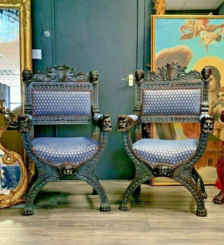 Pair of Refurbished Victorian X Frame Oak Chairs