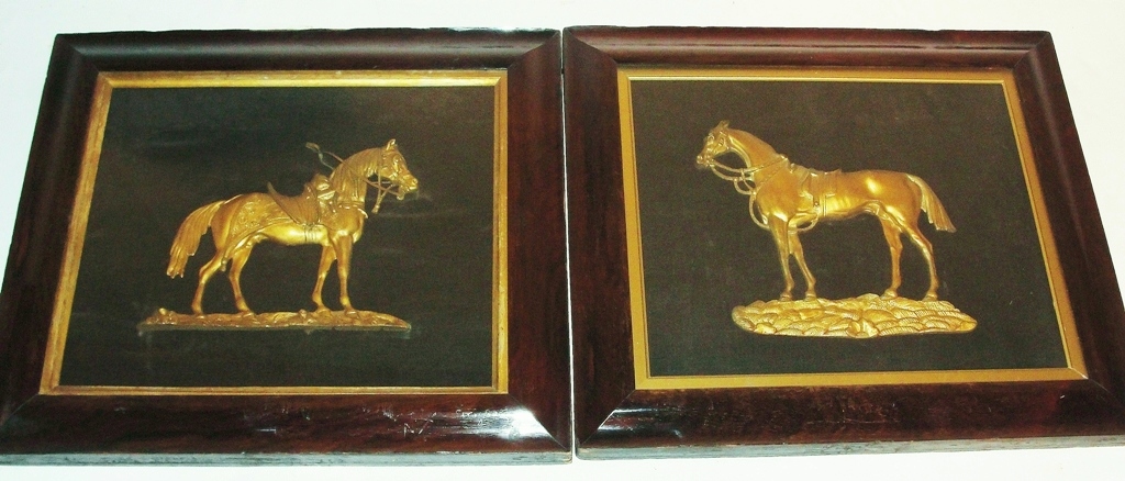 Pair of Regency Bas Relief Gilded Horses, Framed