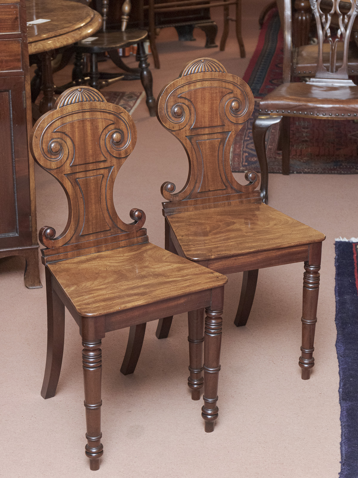 Pair of Regency Mahogany Carved Hall Chairs