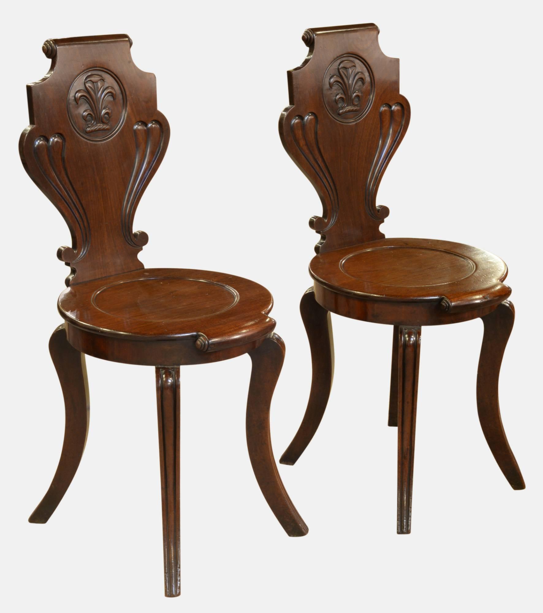 Pair of Regency Mahogany Hall Chairs