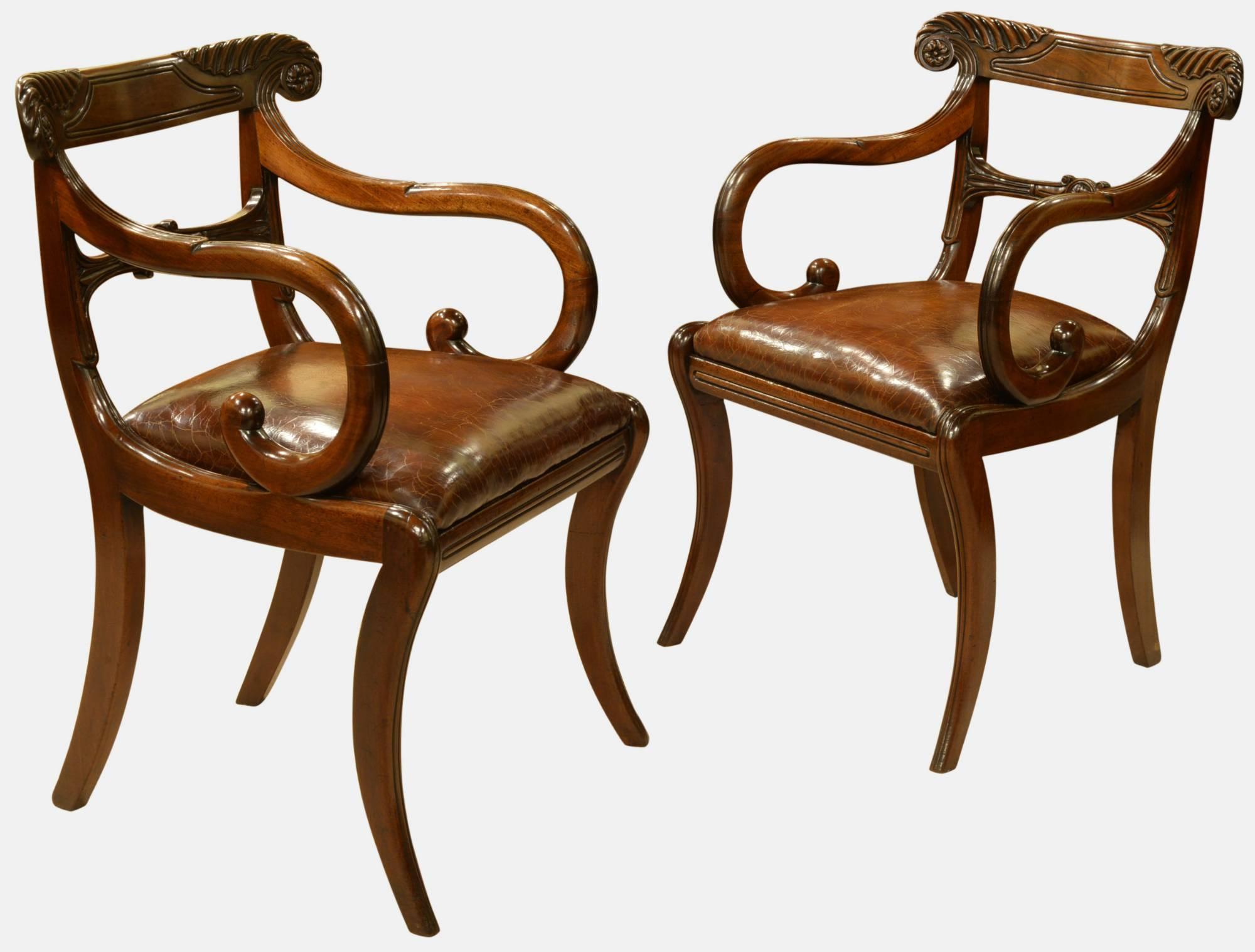Pair of Regency Period Mahogany Carver Chairs