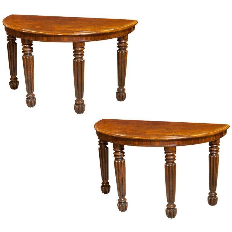 Pair of Regency Period Mahogany Demi Lune Console Tables