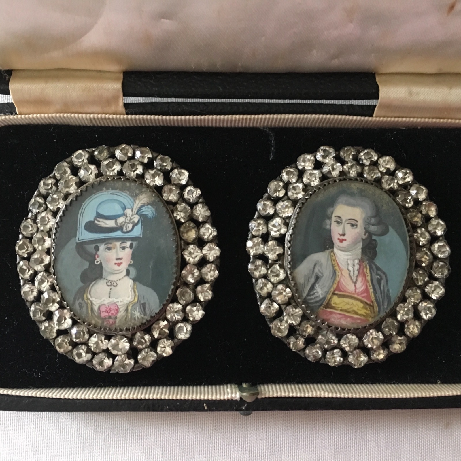 Pair of Regency Period Shoe Buckels with Miniature Portraits