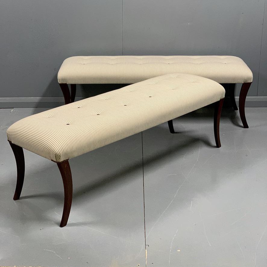 Pair of Regency Stools in buttoned ticking