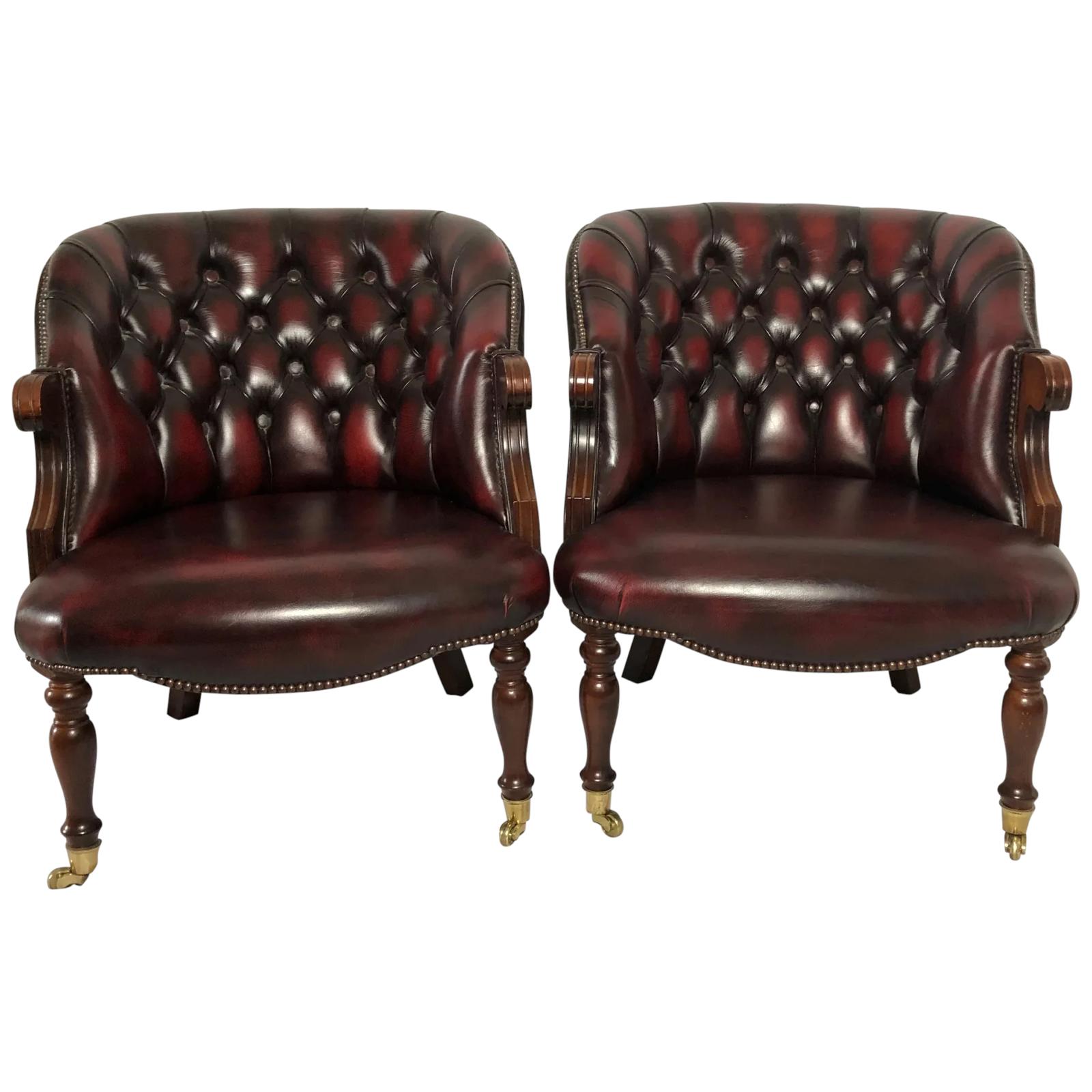 Pair of Regency Style Chesterfield Oxblood Red Leather Club Armchairs