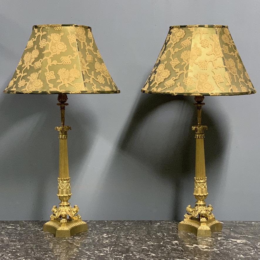 Pair of Regency style gilt bronze lamps with shades (1 of 6)