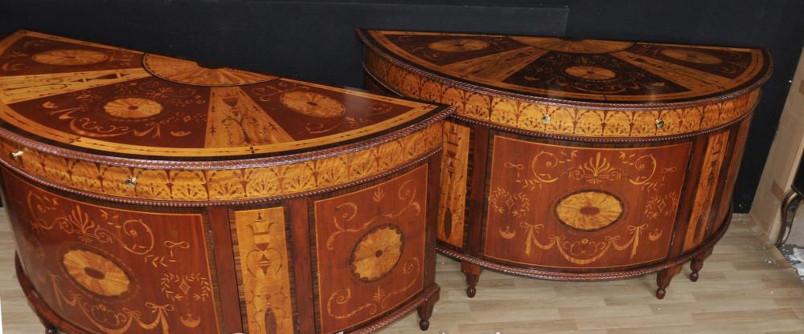 Pair of 'Regency Style' Inlaid Commodes Demi Lune Cabinets Marquetry Inlay