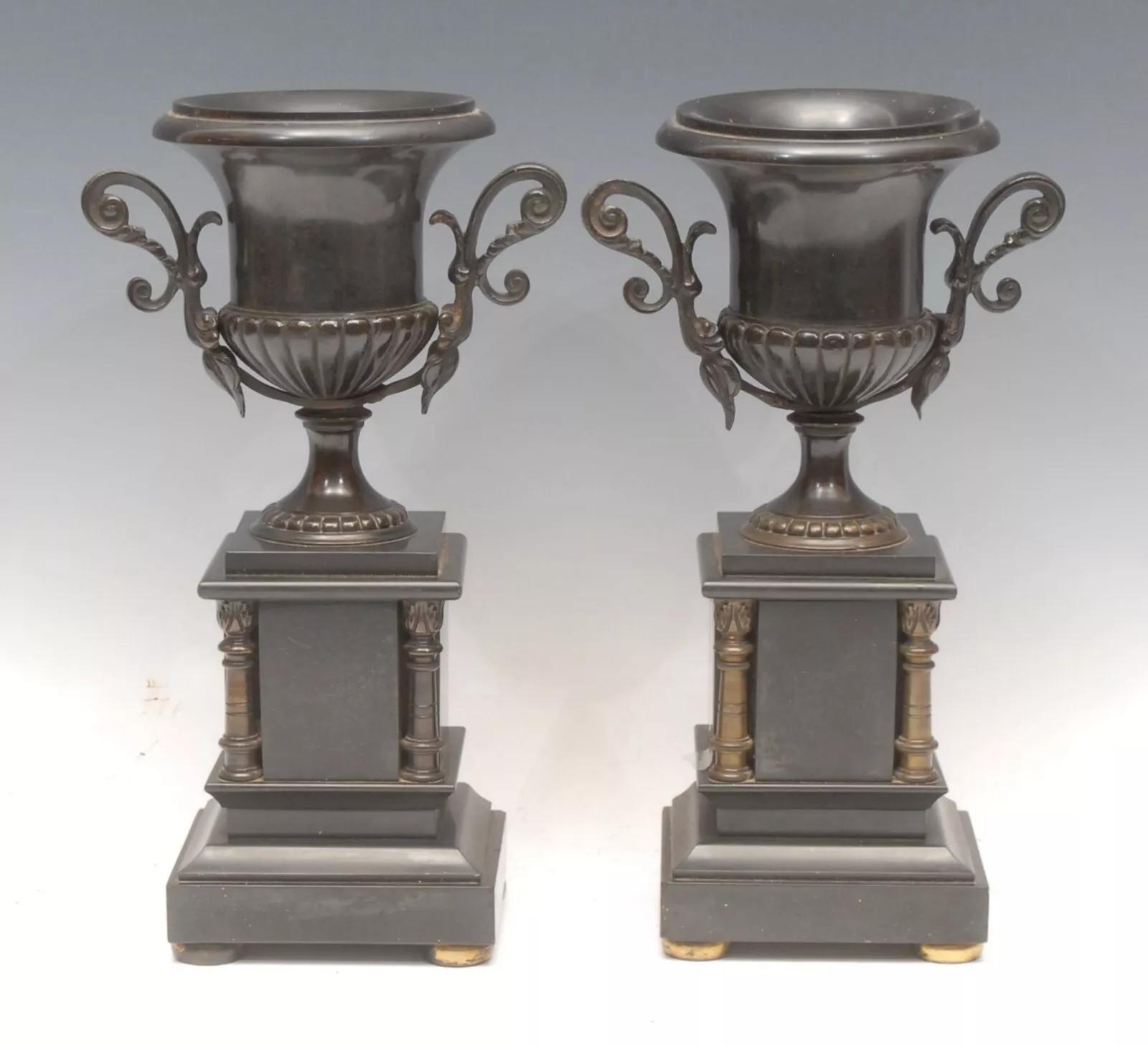 Pair of Renaissance Style 19th Century Bronze Campana Urns Grand Tour Manner