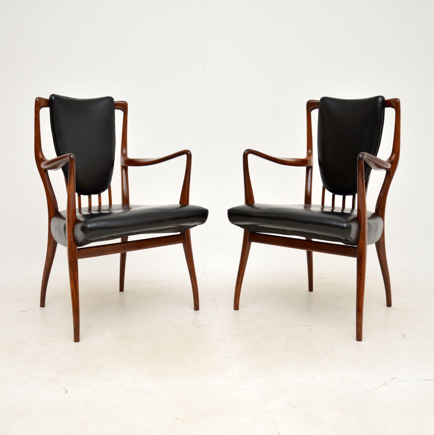 Pair of Rosewood & Leather Armchairs by Andrew Milne