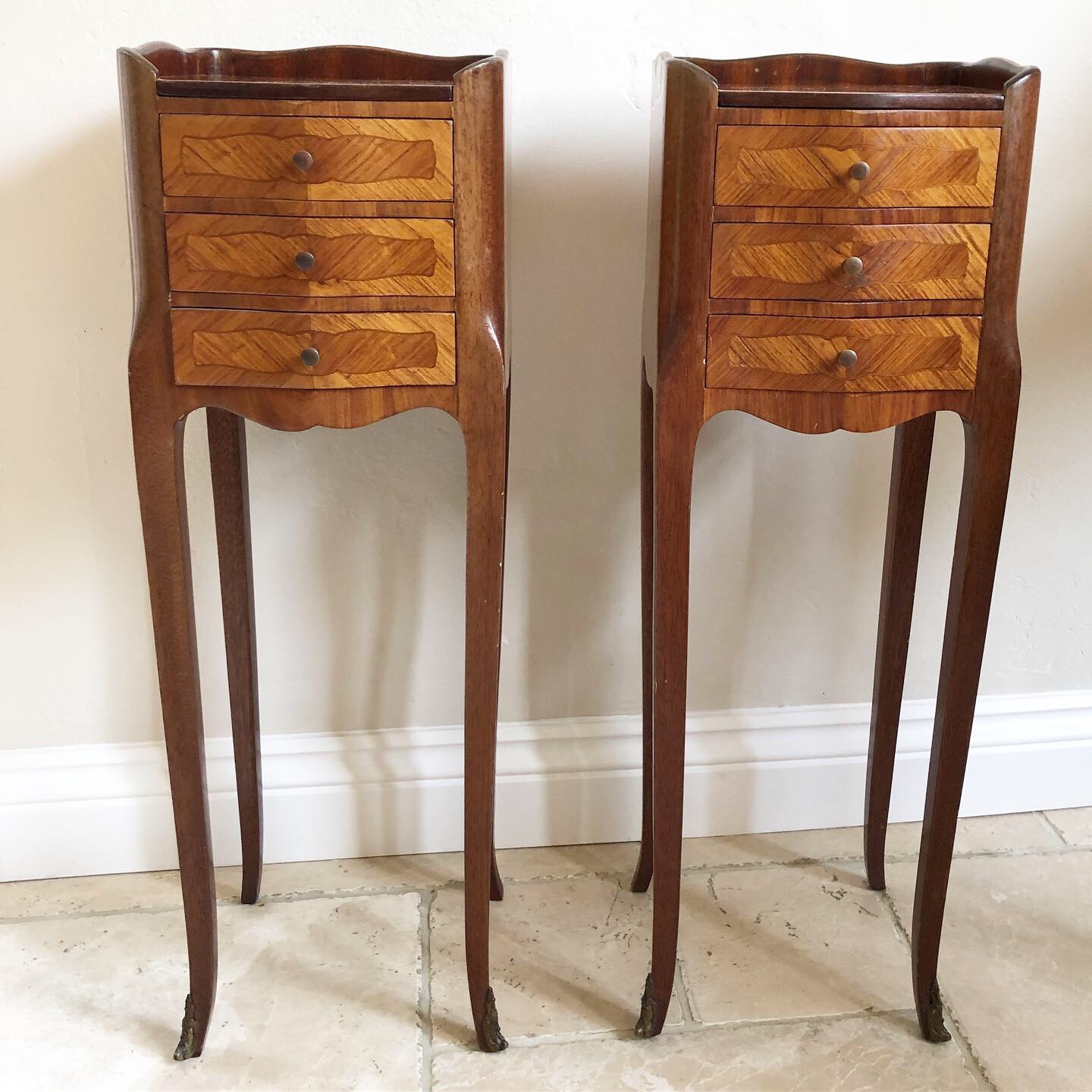 Pair of Rosewood Marquetry French Nightstands C.1920