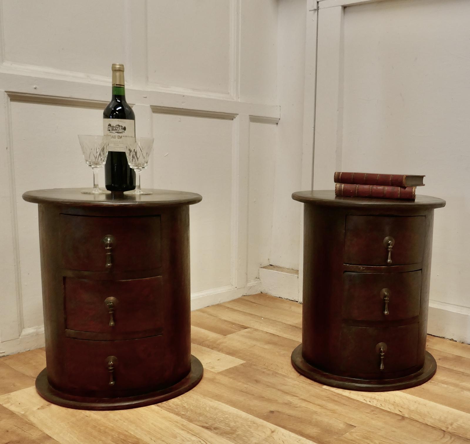 Pair of Round Side Tables or Bedside Cabinets with Drawers