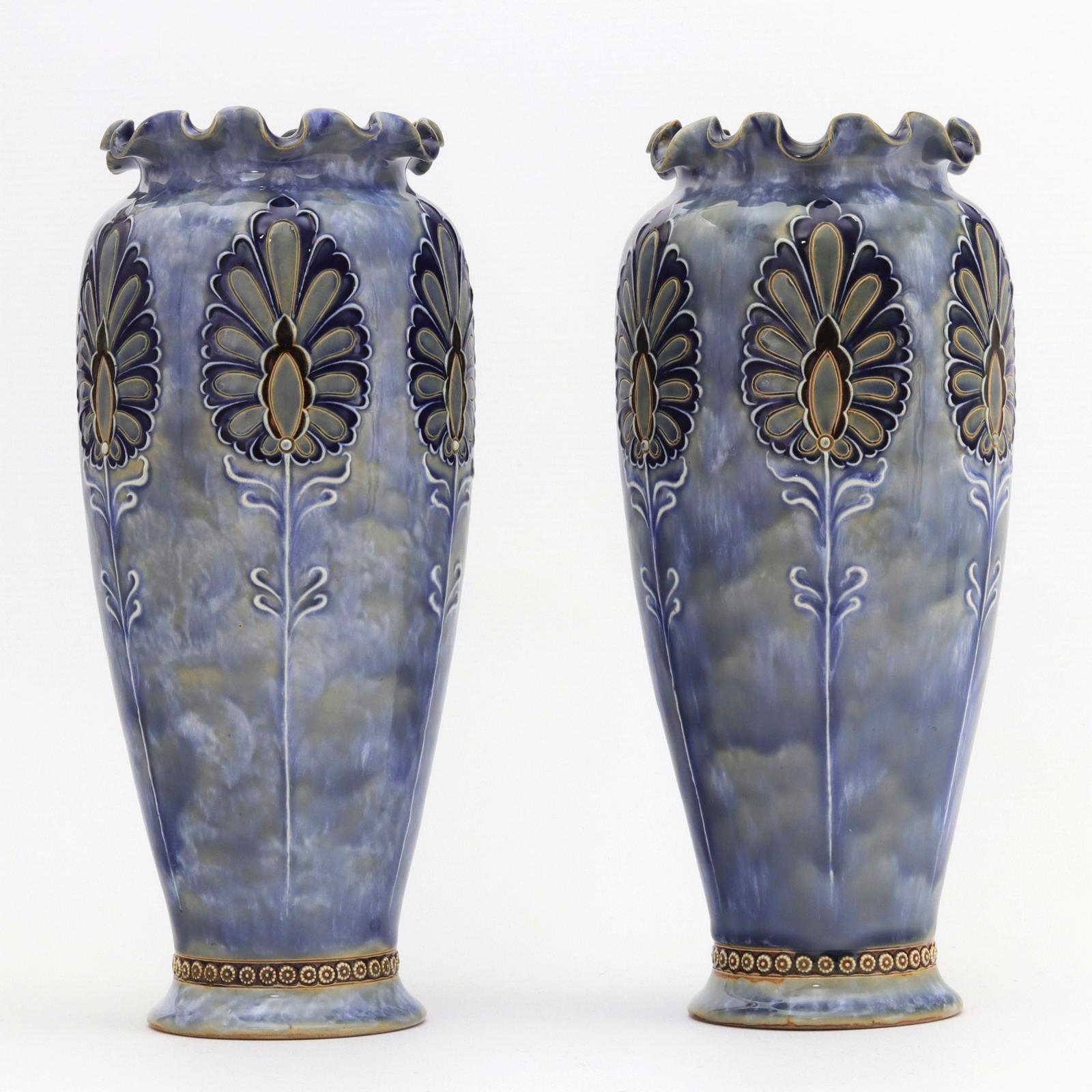 Pair of Royal Doulton Stoneware Art Nouveau Vases by Eliza Simmance c1903 (1 of 11)