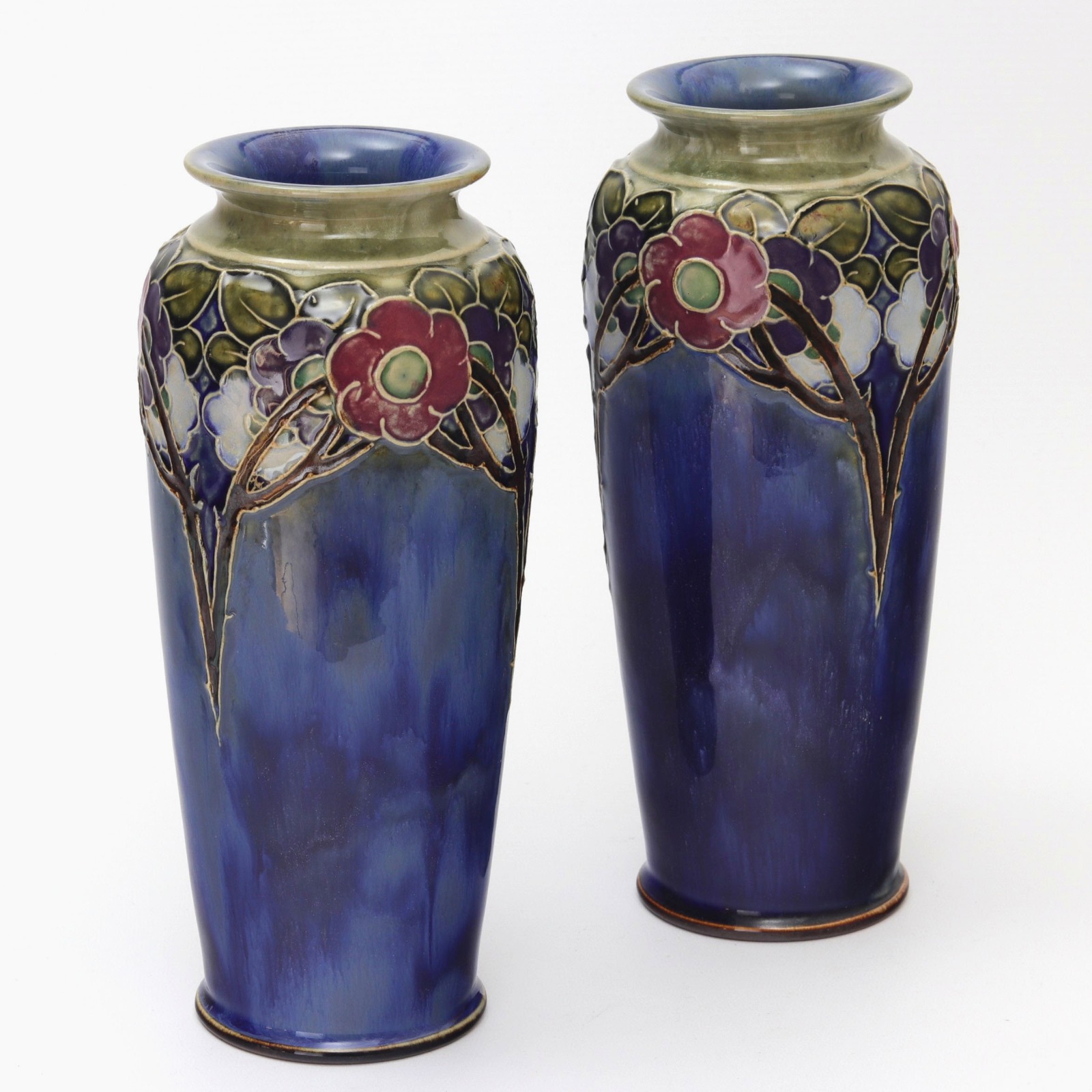Pair of Royal Doulton Stoneware Vases by V Hayward C.1925 25Cm (1 of 1)