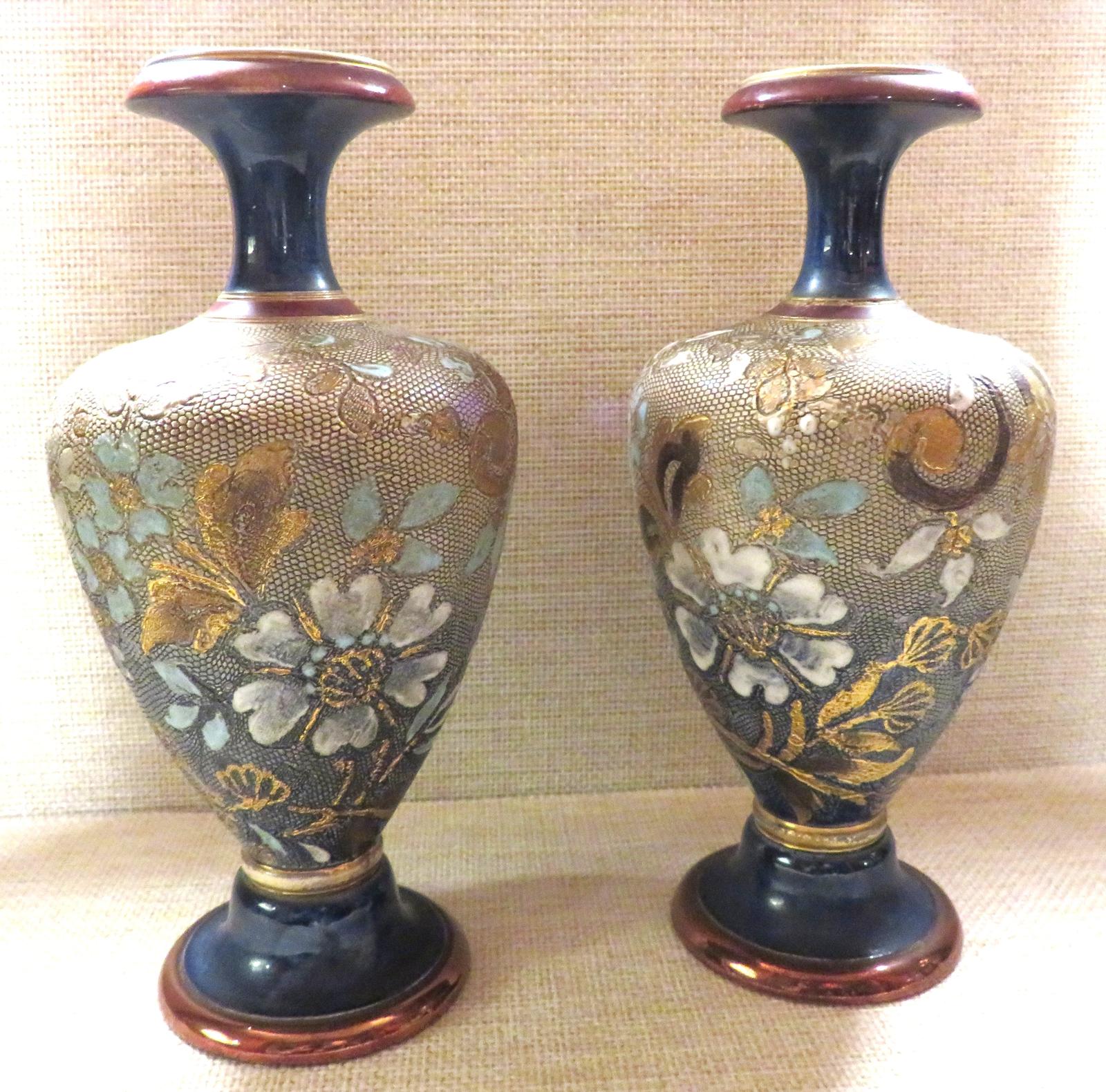 Celia Rose Antiques has clarified that the Pair of Royal Doulton Vases (7 1/2" High) (LA563647) is genuinely of the period declared with the date/period of manufacture being c.1900