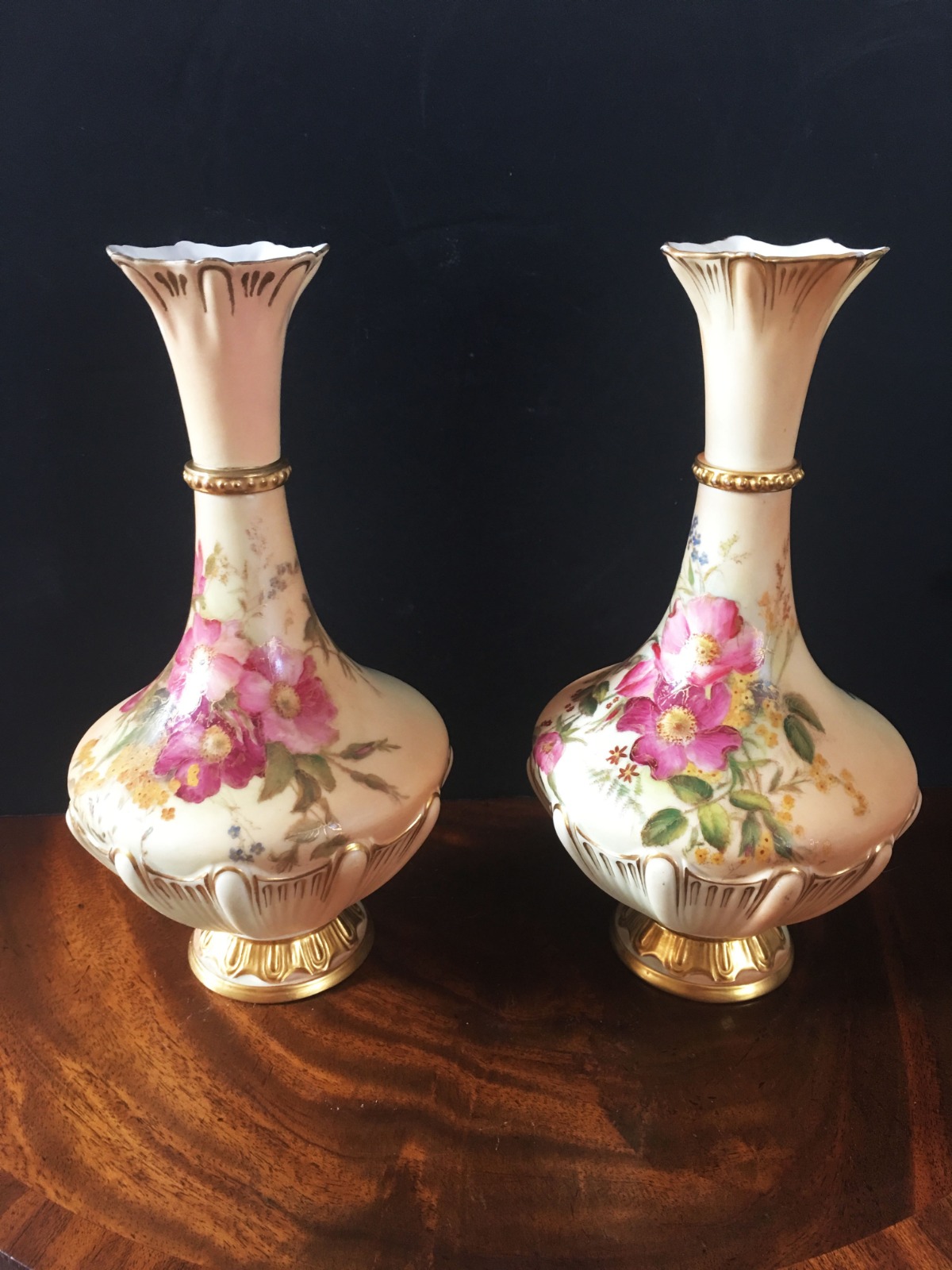 Pair of Royal Worcester Blush Ivory Vases