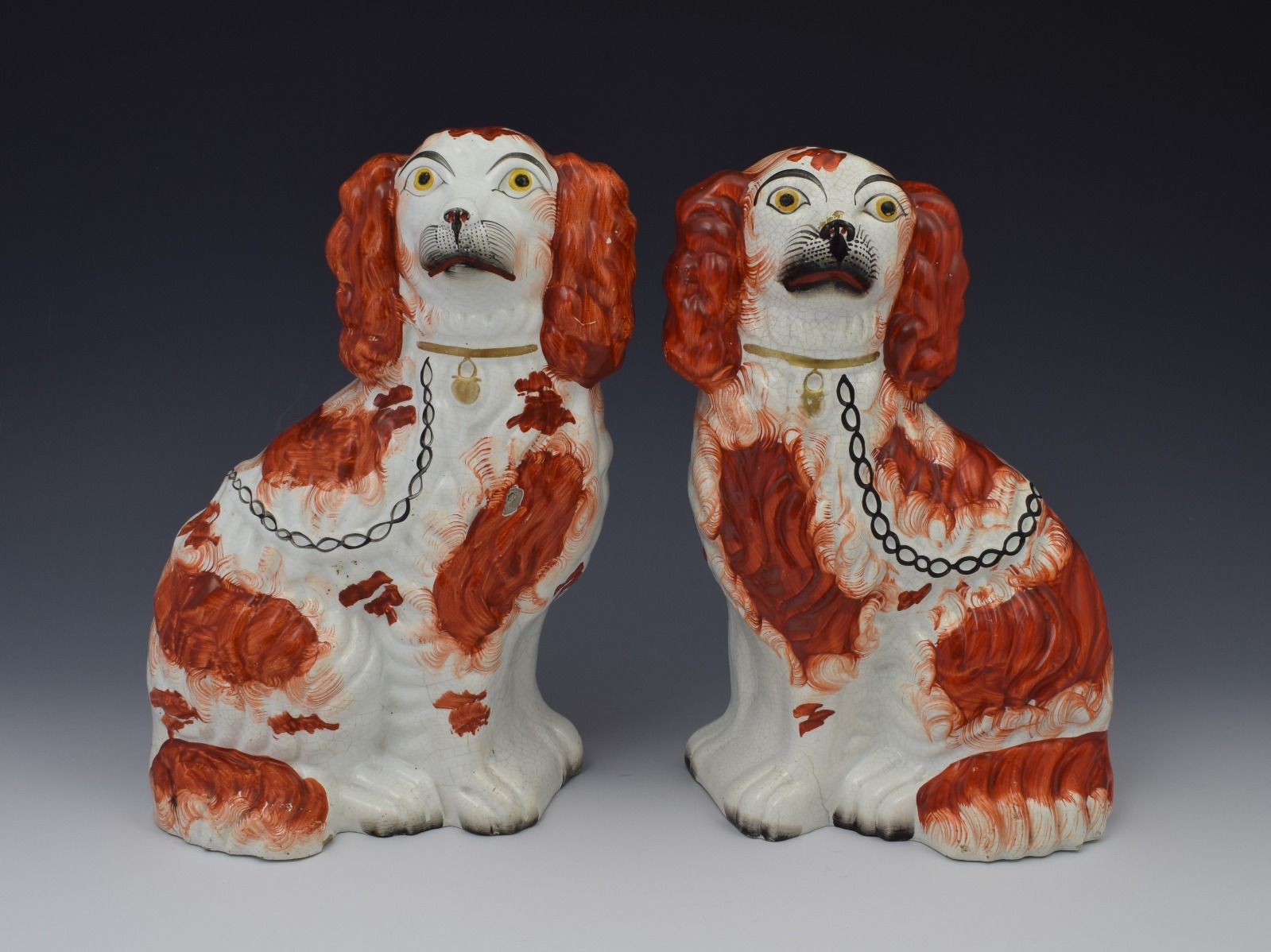 Pair of Russet & White Staffordshire Fireside Spaniels Dogs (1 of 1)
