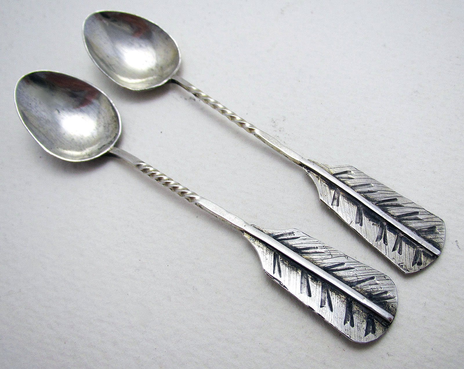 Pair of Russian Imperial Antique Solid Silver 84 Rare Arrow Feather Coffee / Demitasse Spoons
