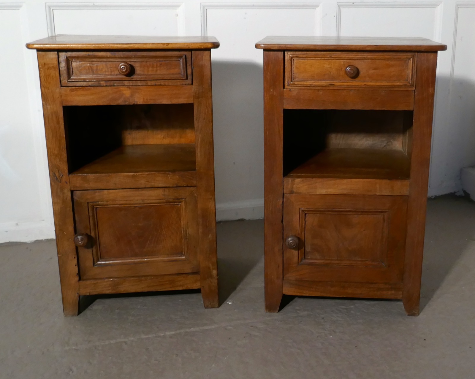 Pair of Rustic French Country Walnut Bedside Cupboards or Night Tables