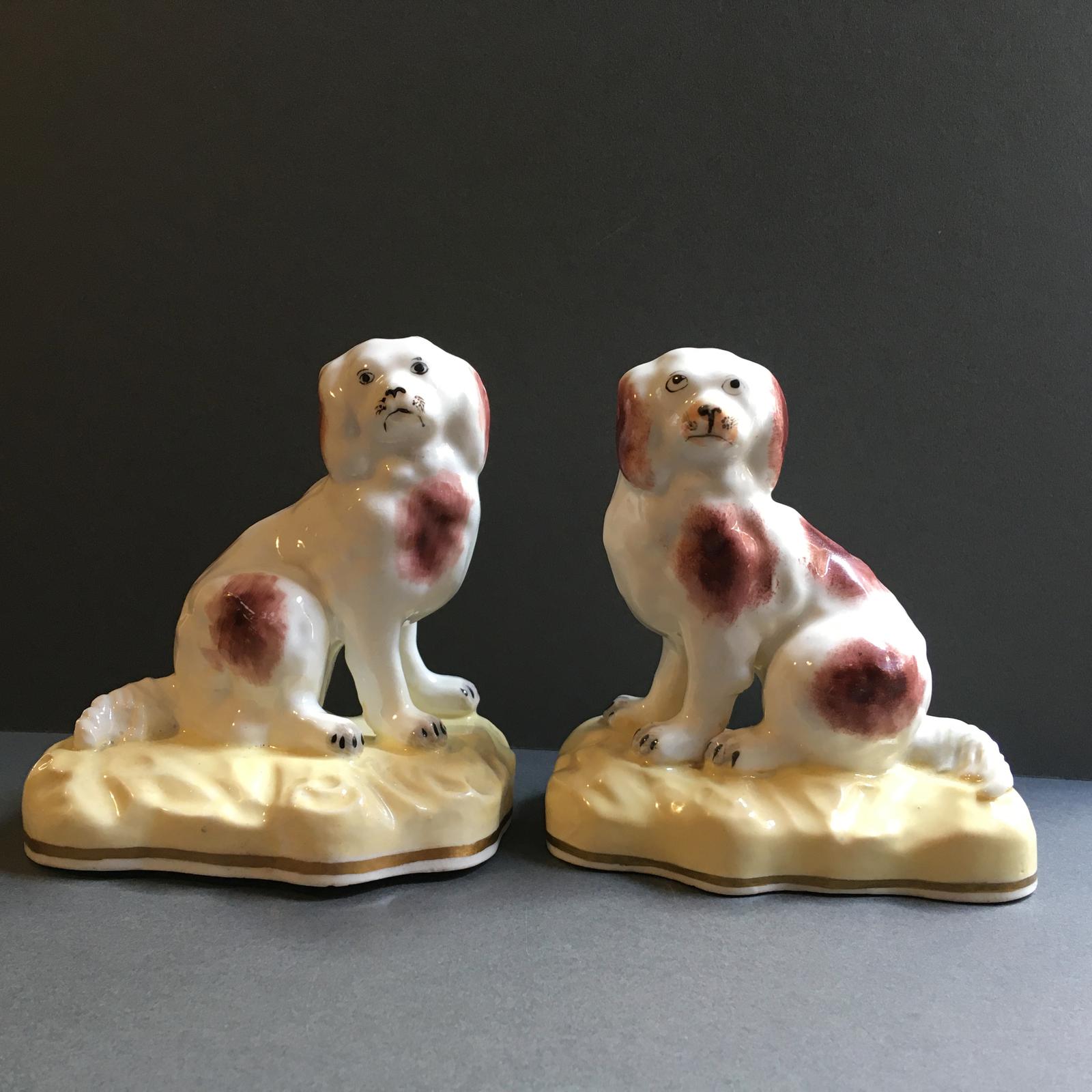 Pair of Samuel Alcock Spaniels Sitting on Their Yellow Mounds