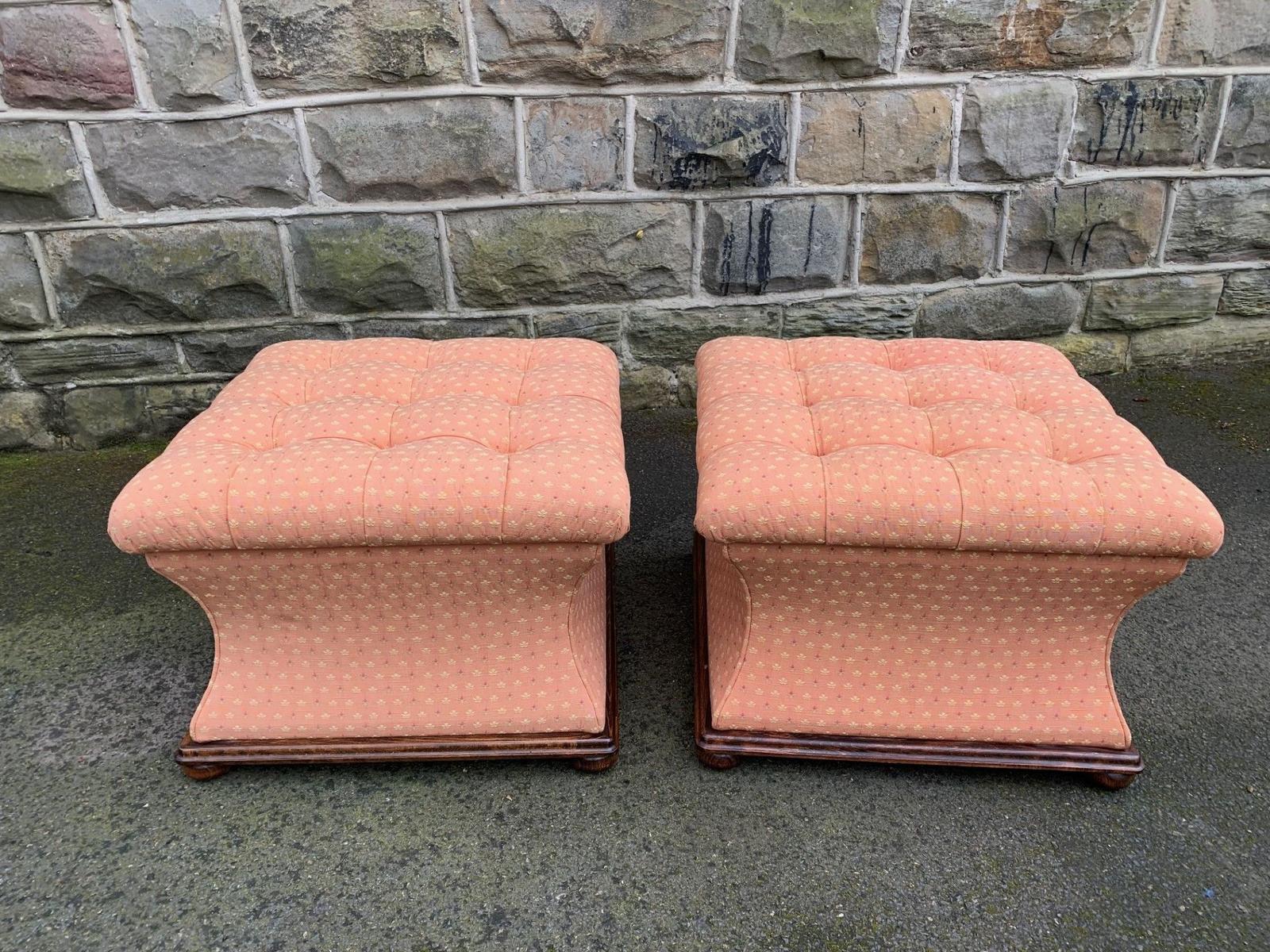 Pair of Sarcophagus Upholstered Box Stool Ottomans