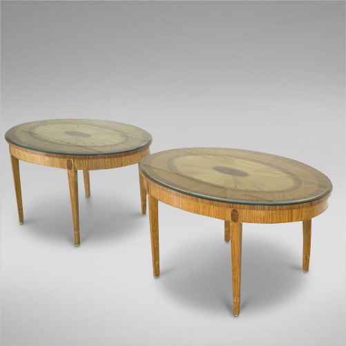 Pair of Satinwood & Tulipwood Oval Coffee Tables