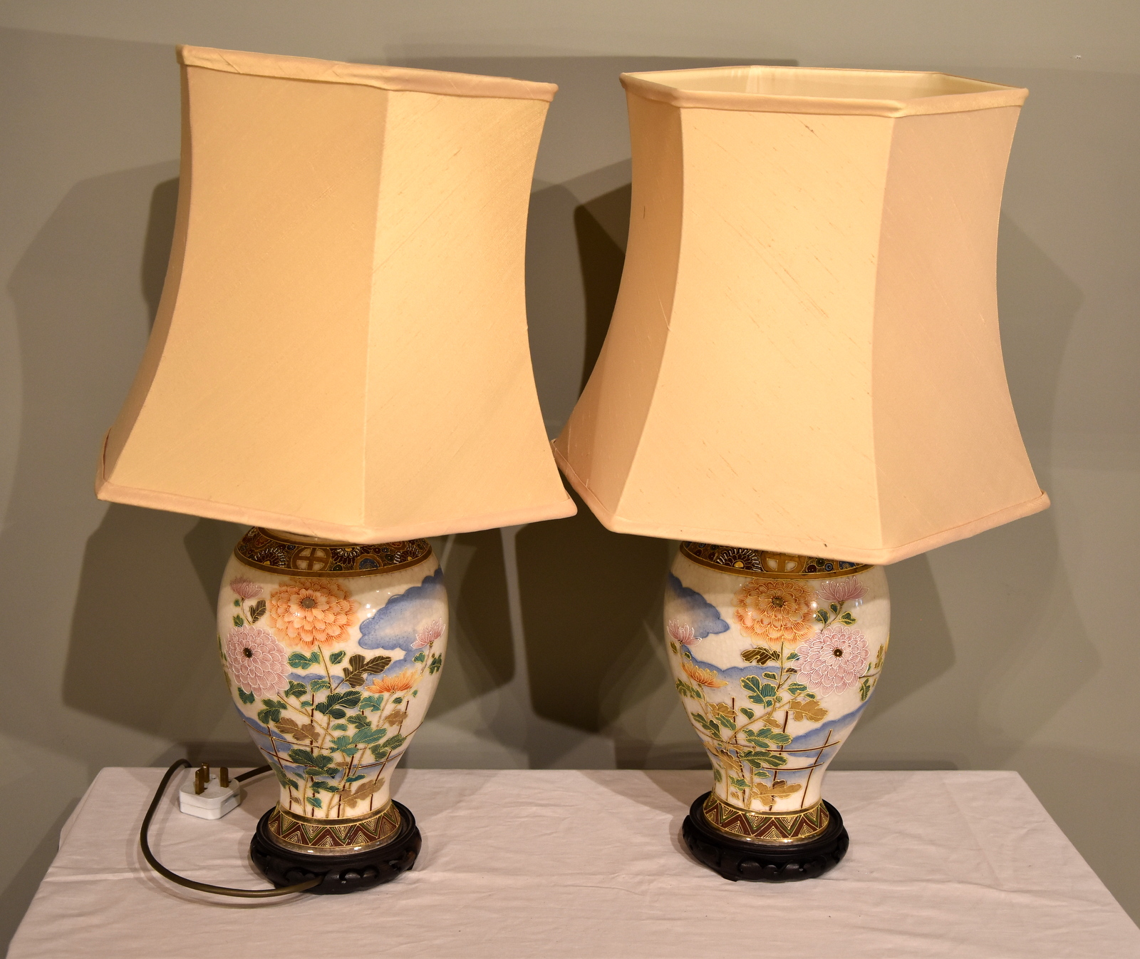 Pair of Satsuma Japanese Vases Converted to Lamps (1 of 1)