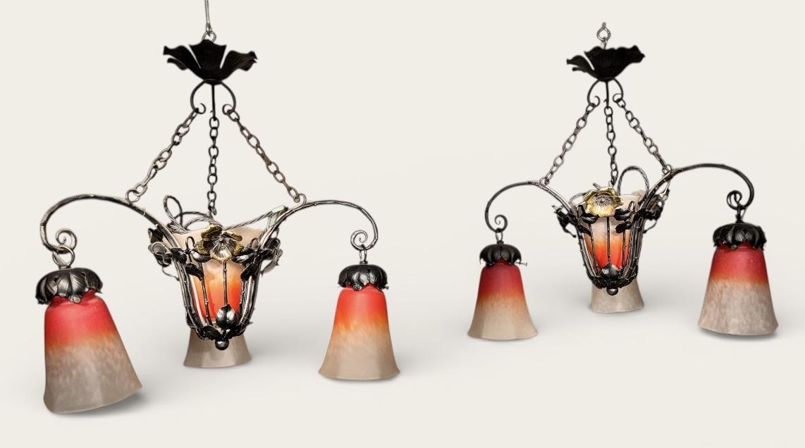 Pair of Schneider Art Nouveau Style Hanging Chandeliers
