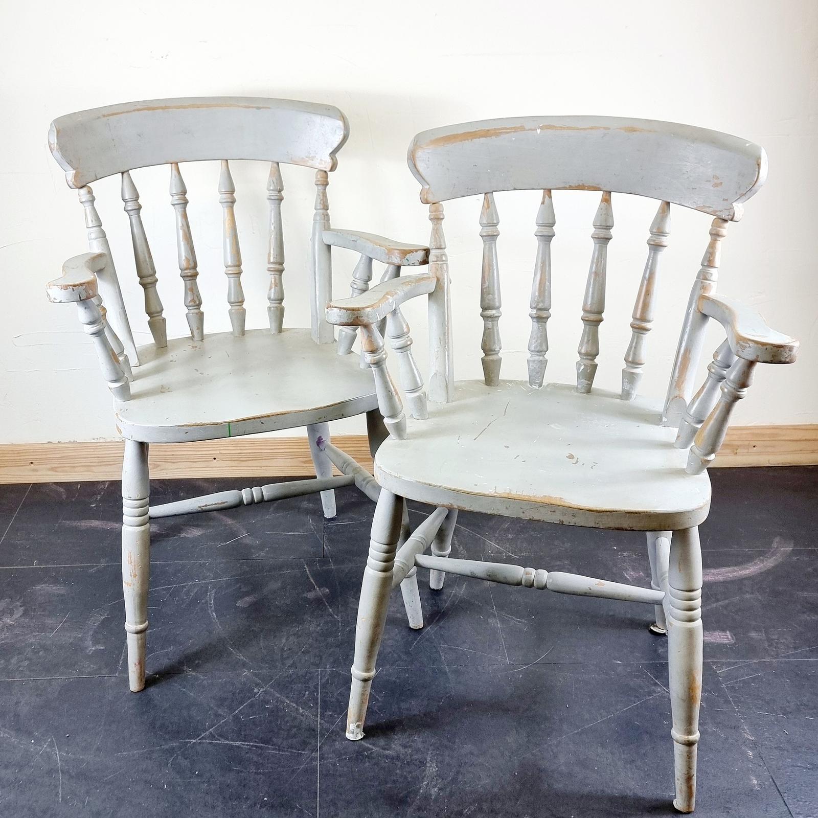 Pair of Shabby Chic Farmhouse Pine Chairs