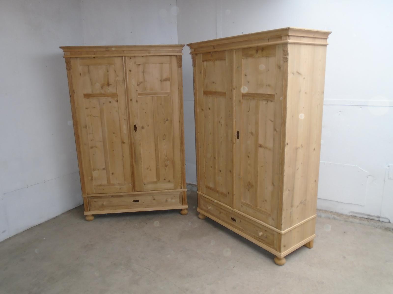 Pair of Shelved Antique Pine Child's Knockdown Wardrobes to wax / paint