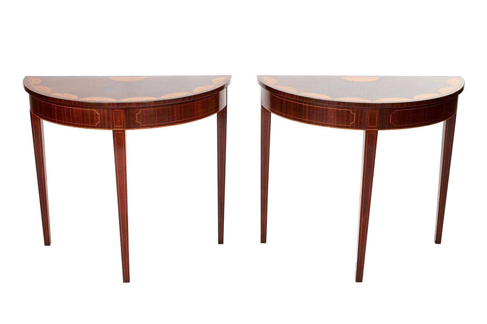 Pair of Sheraton Revival Mahogany Inlaid Console Tables c.1930