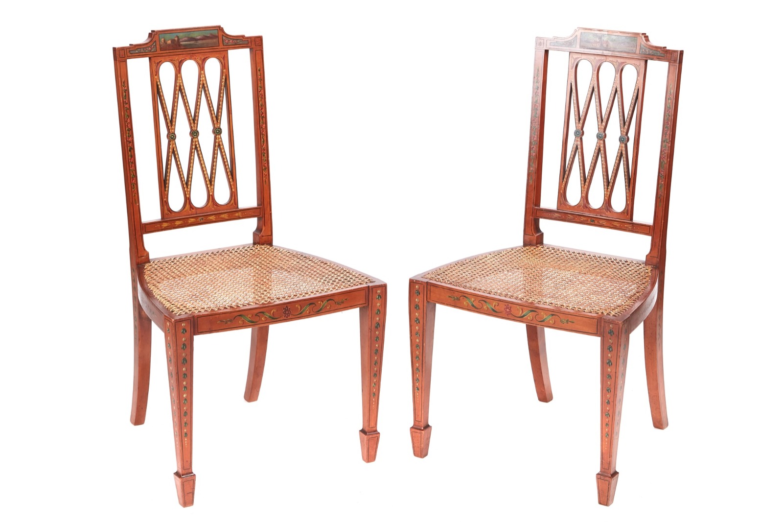 Pair of Sheraton Revival Satinwood & Painted Chairs