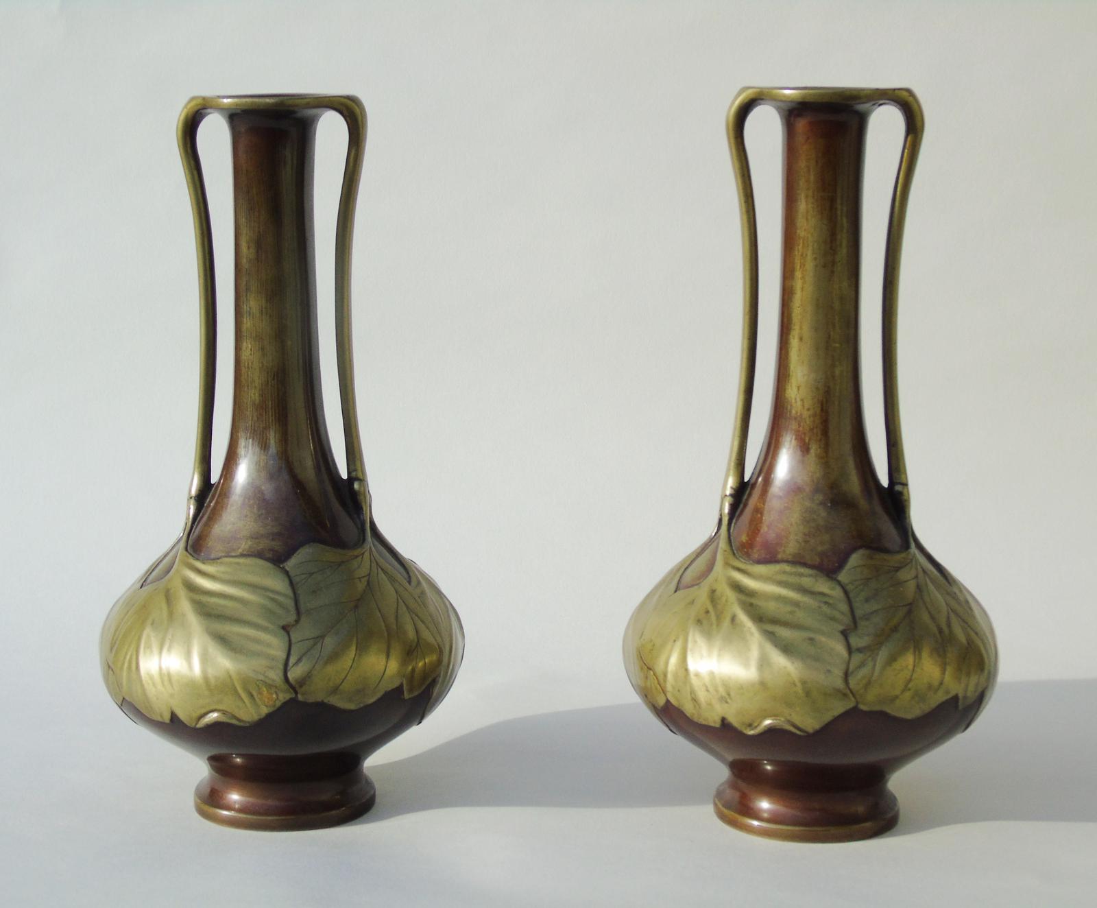 Pair of Signed Japanese Meiji Overlaid Bronze Vases (1 of 8)