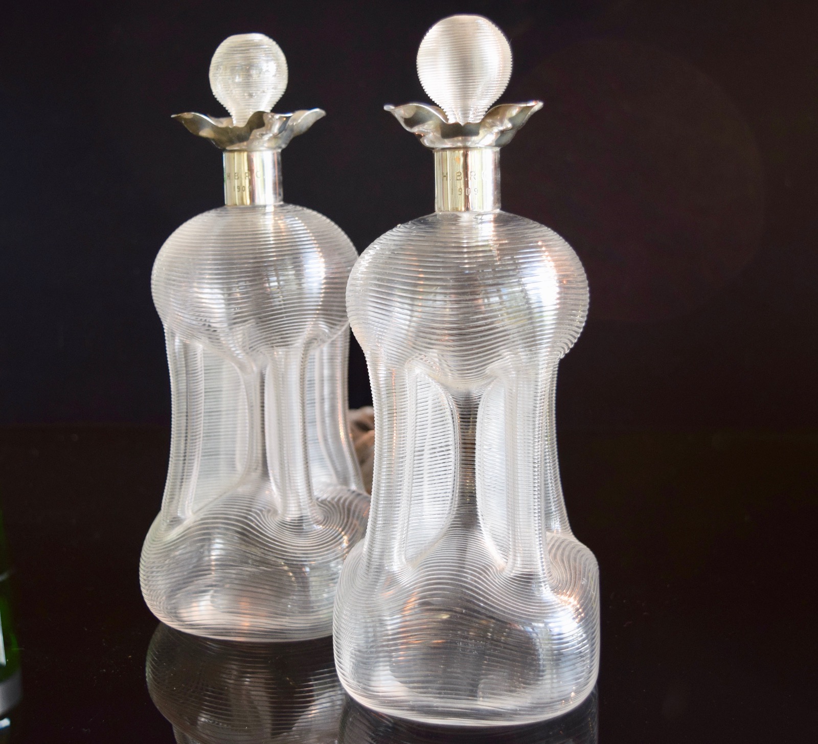 Pair of Silver Kluk Kluk Decanters by John Grinsell 1908