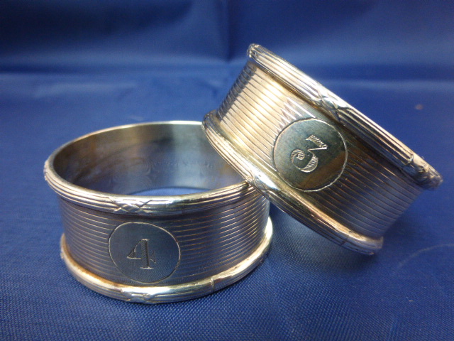 Pair of Silver Numbered (No 3 and No 4) Napkins Rings