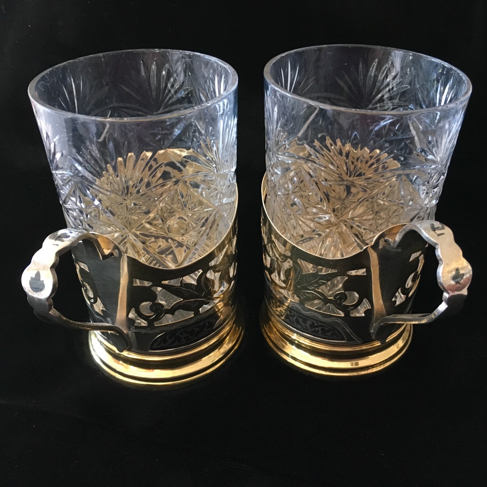 Pair of Silver, Parcel Gilt & Niello Russian Tea Glass Holders