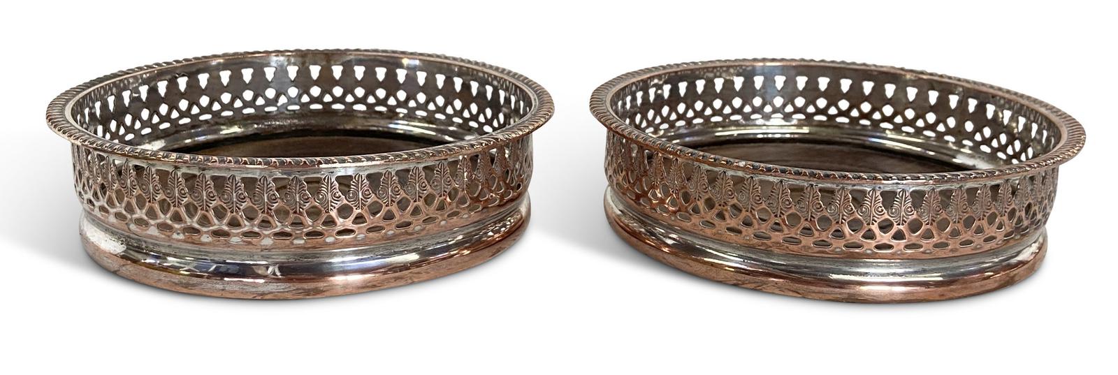 Pair of Silver Plated Bottle Coasters with Turned Wooden Bases