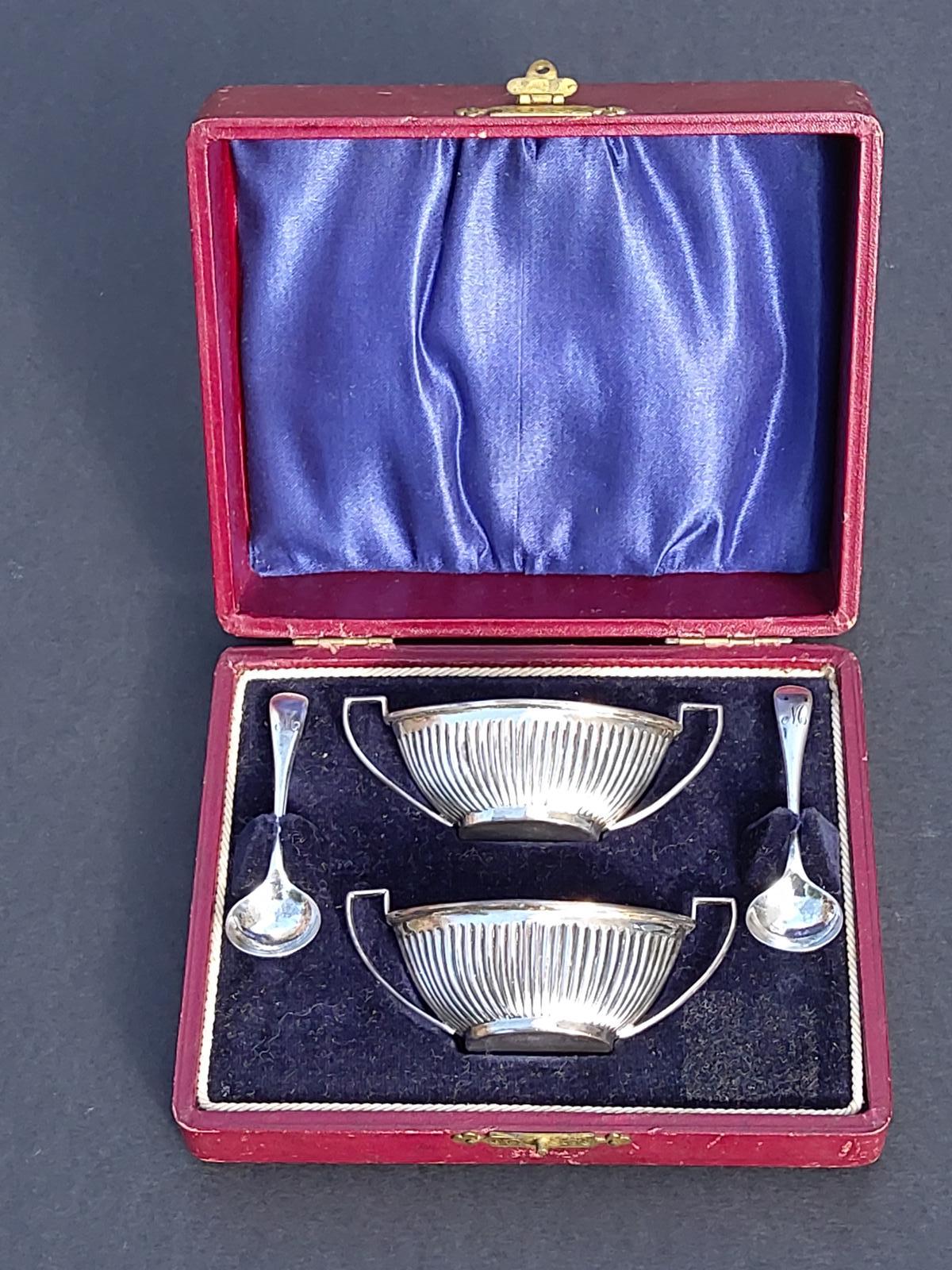 Pair of Silver Salts with Spoons in a Presentation Box (1 of 9)