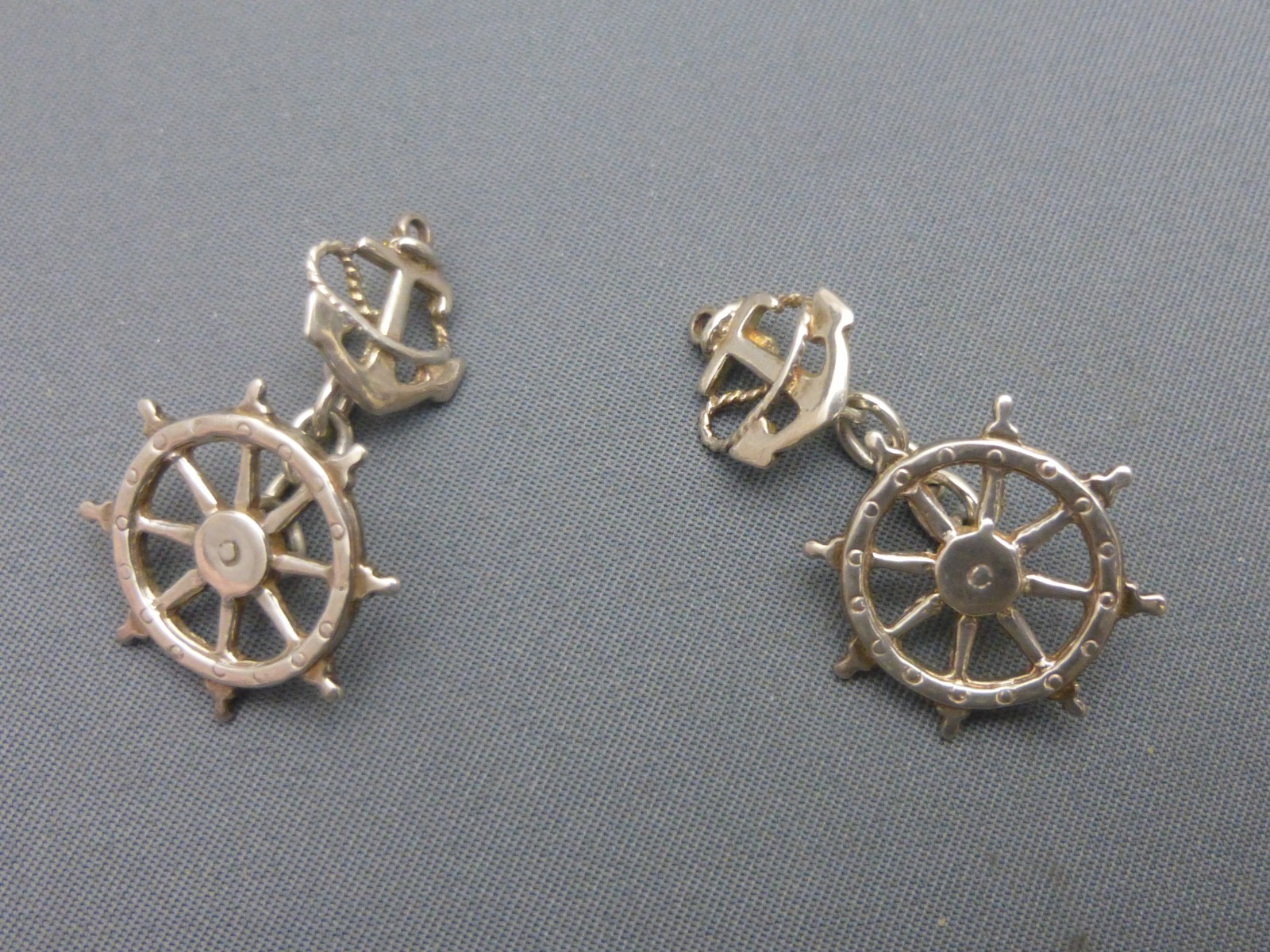 Pair of Silver Ships Wheel & Anchor Cufflinks