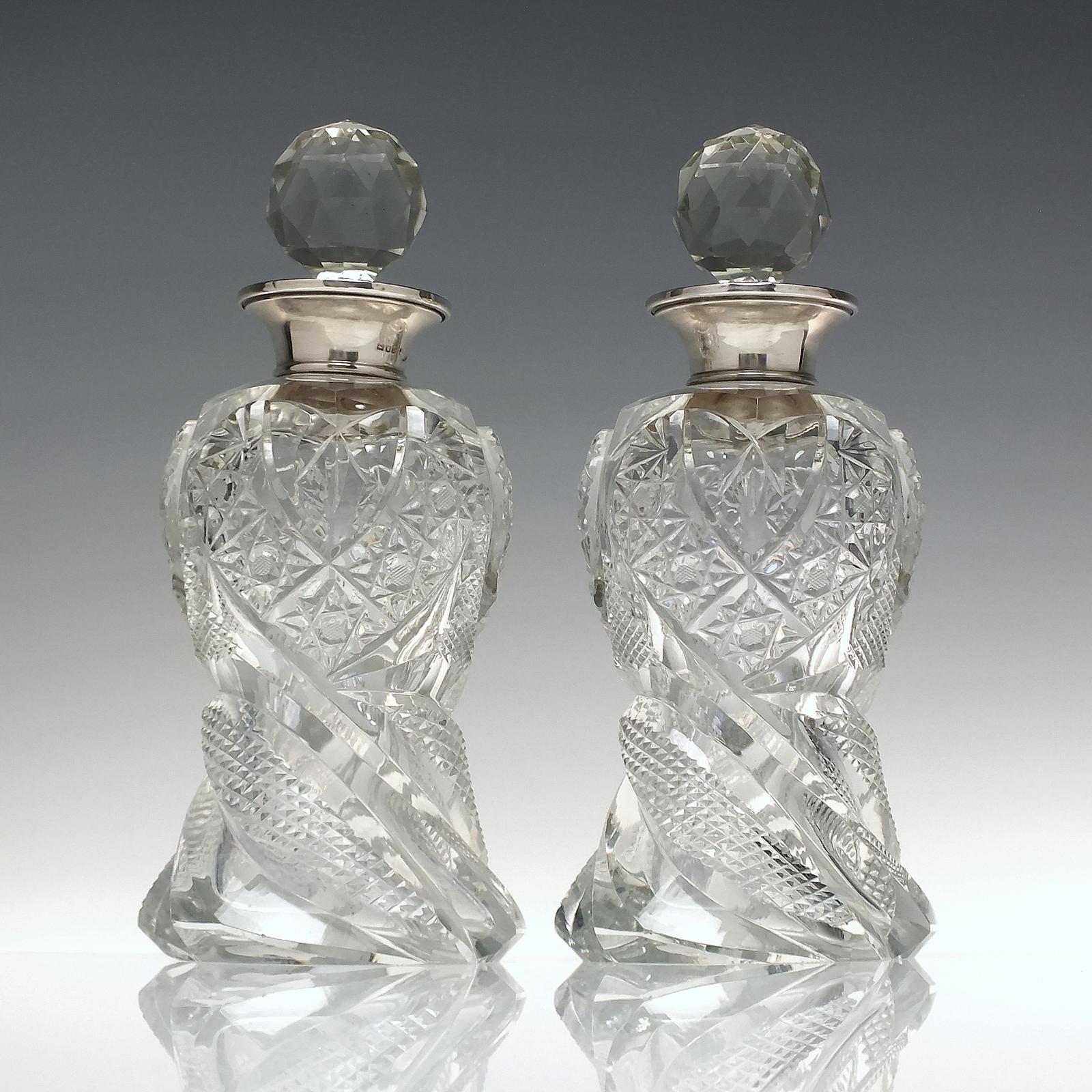 Pair of Silver Topped Edwardian Glass Decanters c.1910