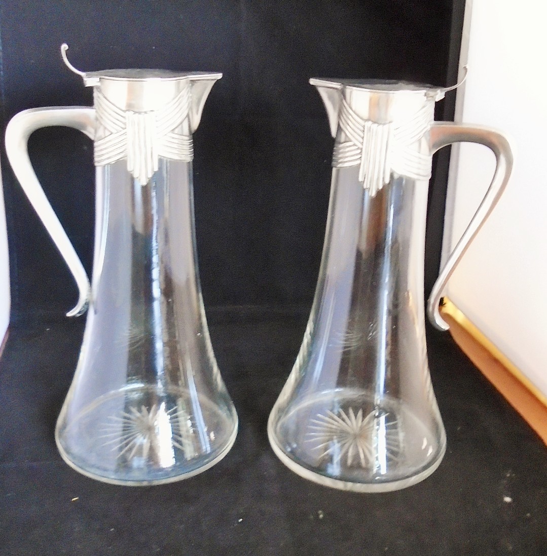 Pair of Silver Topped Secessionist Claret Jugs