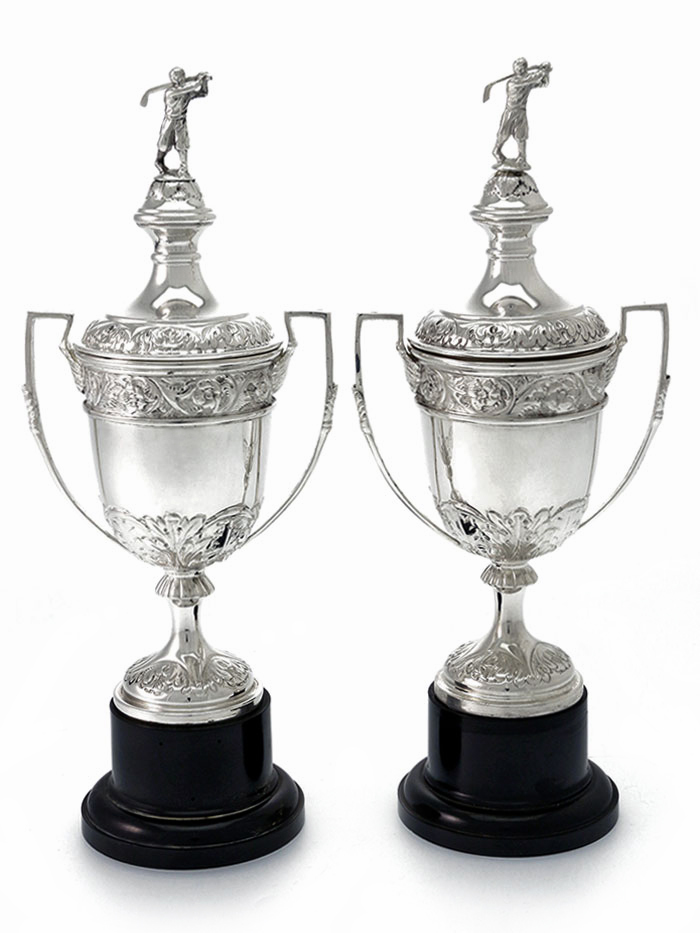 Pair of Silver Vase Shaped Golf Trophy Cups c.1936
