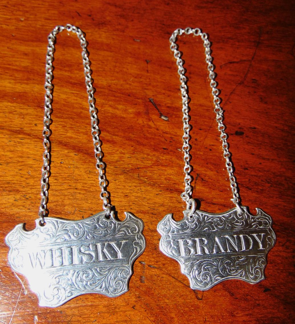 Pair of Silver Wine Labels Whisky & Brandy by George Unite 1844