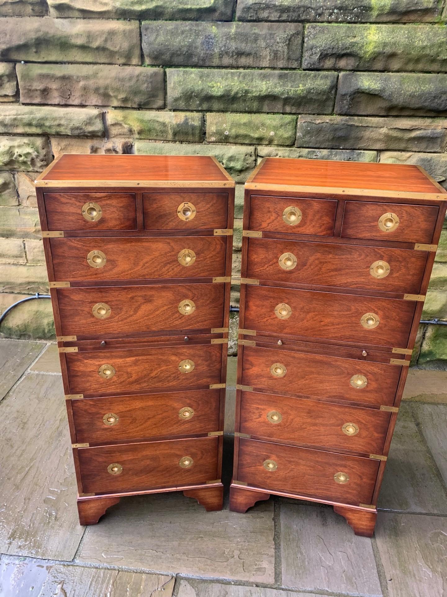 Pair of Slim Brass Bound Mahogany Military Campaign Style Chest Drawers