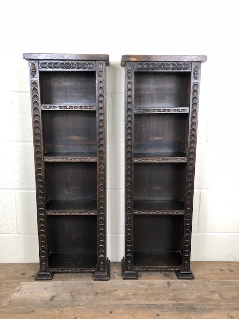 Pair of Small Antique Carved Oak Bookcases (1 of 1)