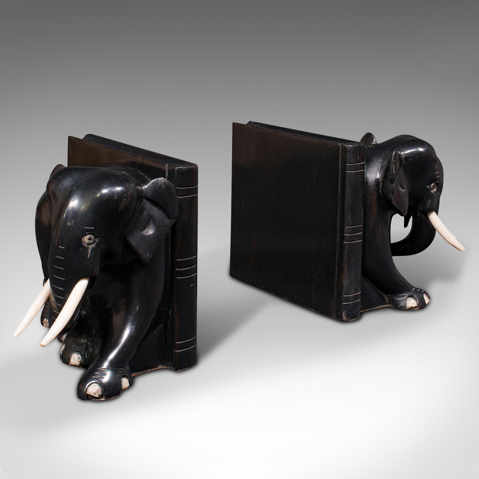 Pair Of Small Antique Elephant Bookends, Indian, Ebony, Novel Rest, Victorian (1 of 10)