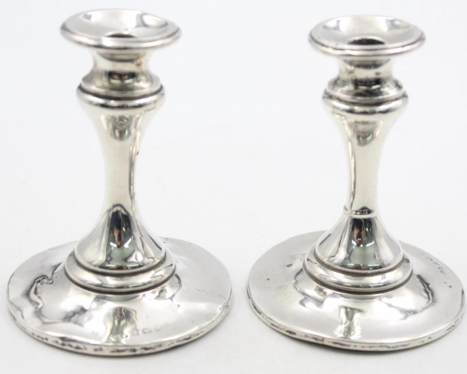 Pair of Small Edwardian Silver Tapered Candlesticks by Henry Matthews Birmingham 1906 (1 of 15)