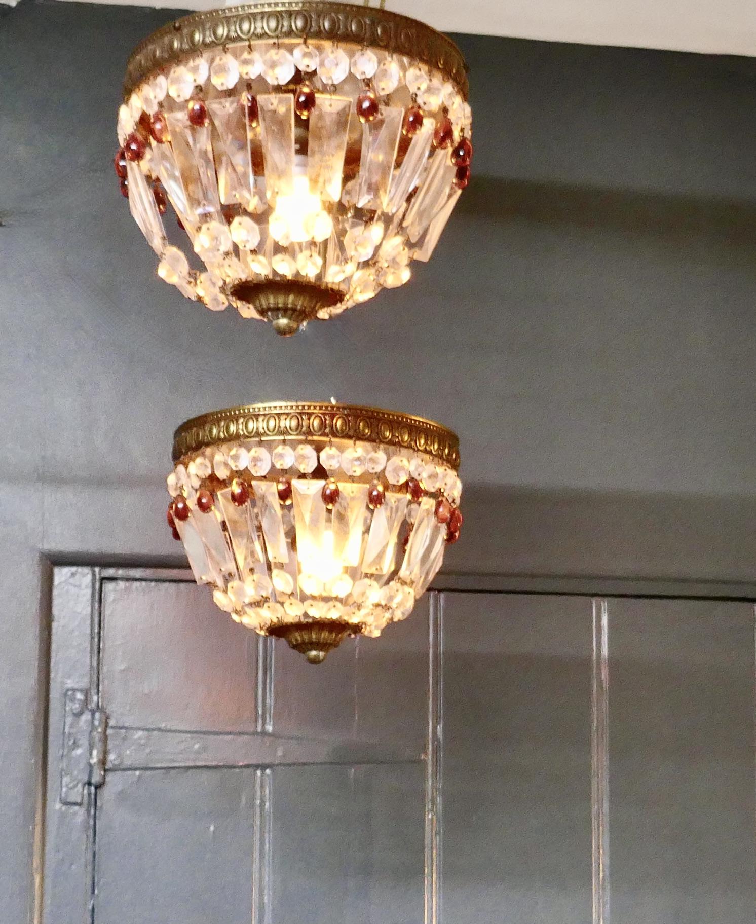 Pair of Small French Empire Style Crystal Basket Chandeliers