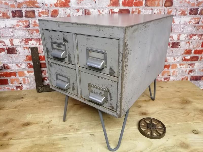 Pair of Sofa End or Bedside Tables. Heavy Duty Card Index Cabinets + Hairpin Legs