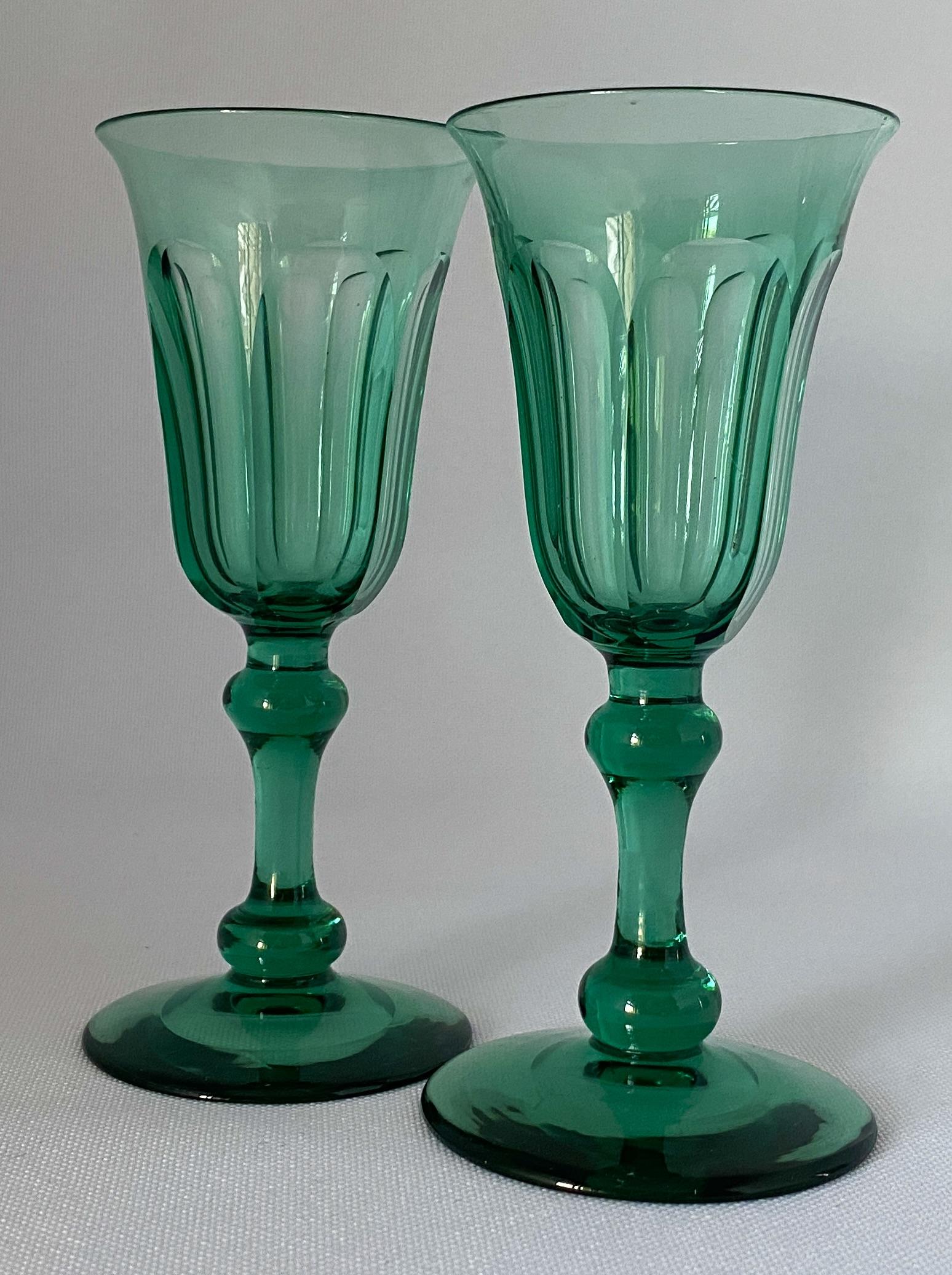 Pair of Soft Green Late Victorian Wine Glasses c.1880