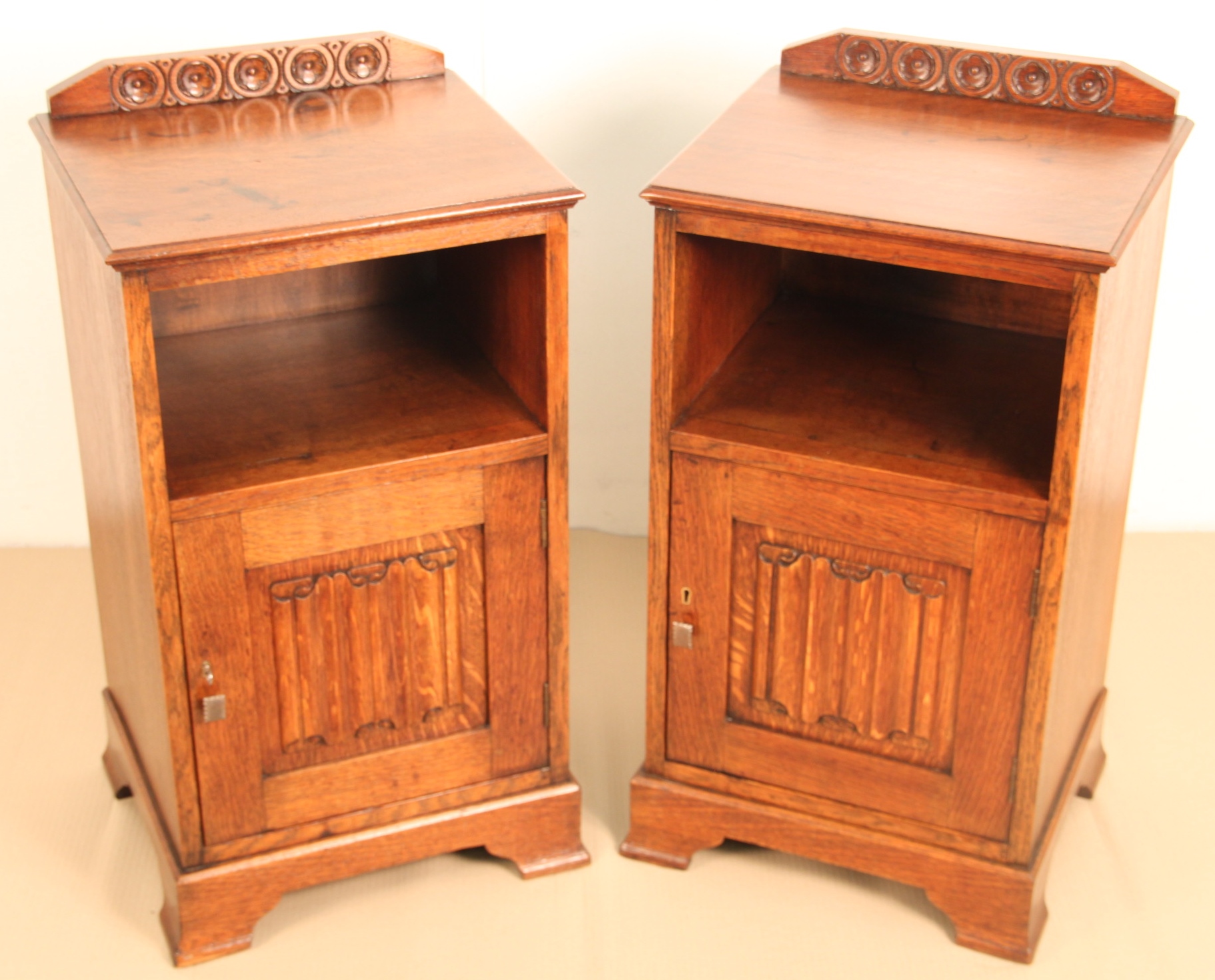 Pair of Solid Oak Bedside Cupboards c.1920